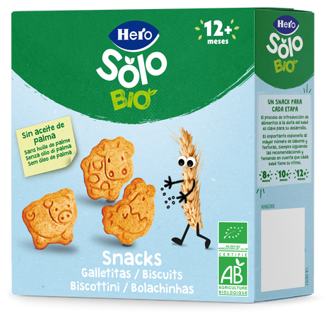 - Galleta Hero Solo Bio Animales (+12 meses): con formas divertidas que les llaman la atención y fomentan que coman solitos.